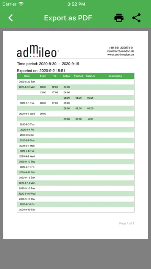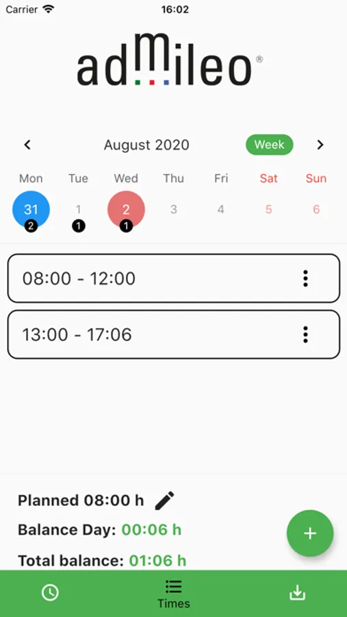 admileo Time is a smart, uncomplicated and free app for time recording for small and medium-sized companies.