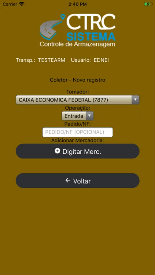 App coletor de dados de Armazenagem integrado com o CTRC Sistema