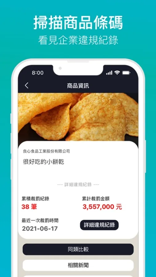 - 掃描商品條碼,看見企業違規紀錄