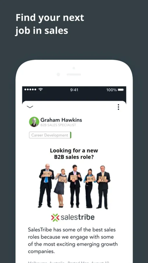 SalesTribe not only assists B2B salespeople to navigate their way through this period of change, but we also help salespeople to reinvent, repurpose and reconnect into new career opportunities. SalesTribe helps find exciting new job opportunities for our members, such as working in the burgeoning start-up space, or with high growth companies, where modern sales capability is now in high demand.