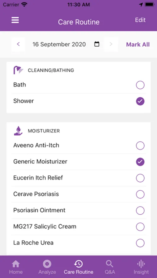 • Select from various types of treatment like moisturizers, dermatitis creams, steroids, medicines, and bathing routines.