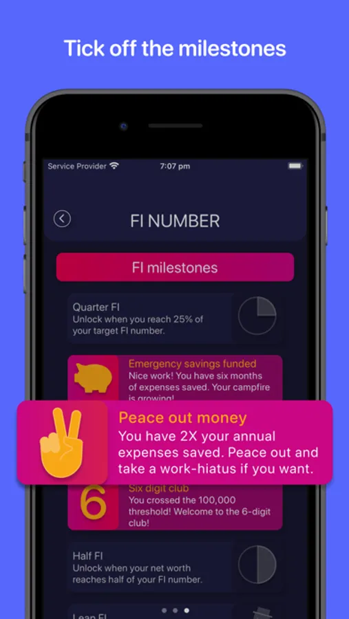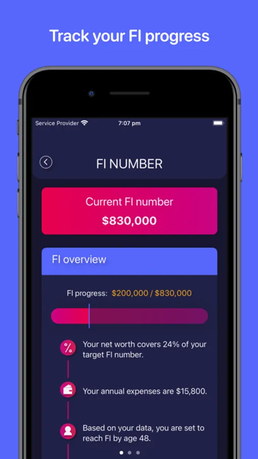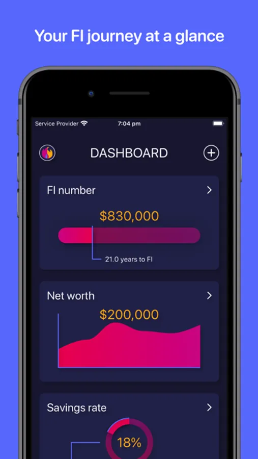 This app lets you track your net worth, FI number and your savings rate as often as you need to. FI Scouts shows your progress with big numbers and stunning charts, so you're always on top of your goals. All data entry is done manually for security reasons, and your data stays safe and private.
