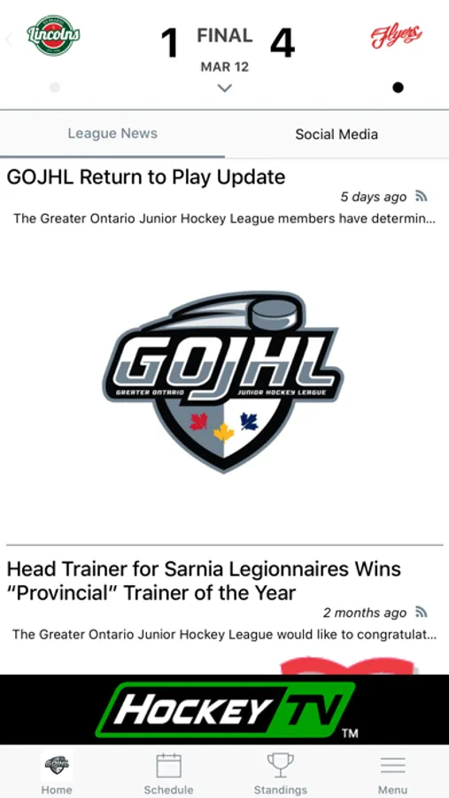 The official mobile app of the Greater Ontario Junior Hockey League, featuring real-time scoring data direct from each arena. Follow every game in real time with complete box scores, game summary and up to the minute player stats. Watch HockeyTV from within the app. The GOJHL app also features past Scores, future Schedules, Standings and both player and goalie stats.