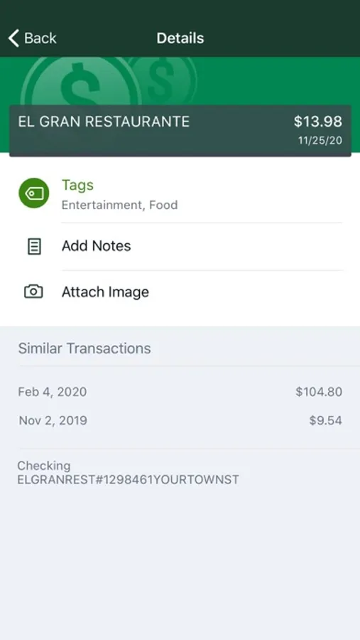 - Keep your transactions organized by allowing you to add tags, notes and photos of receipts and checks