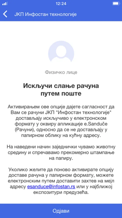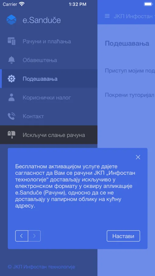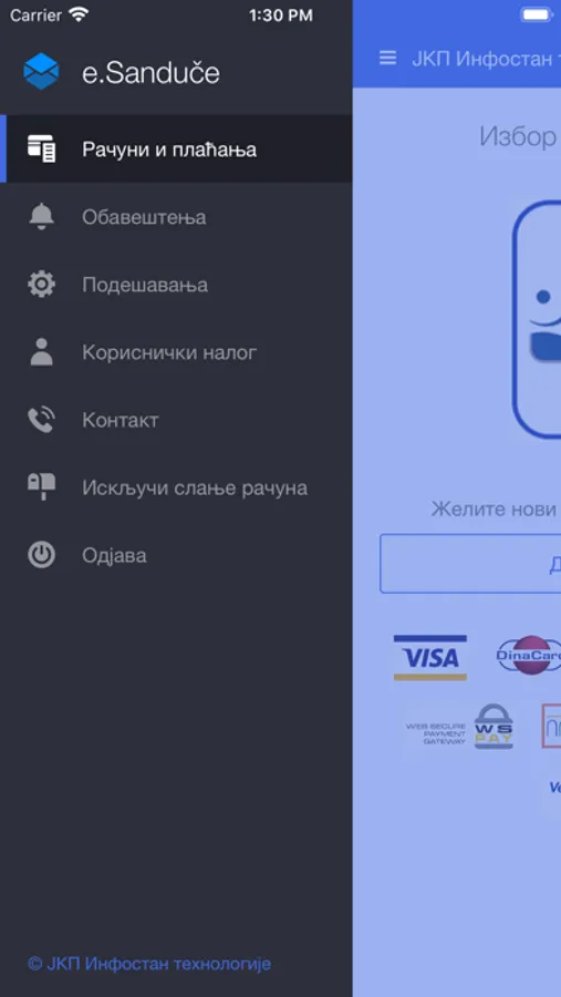 JKP “Infostan tehnologije“ has created a modern, efficient and secure platform for electronic delivery of bills and collecting payments called “e.Sanduče“. It enables the users to receive their bills for communal services provided by JKP “Infostan tehnologije“ and also bills from other legal entities all in one place, right after the debit is formed, before printing the bills on paper and distributing them via postal services. The most important benefit for customers is the ability to pay the bills “on-click” with no need for going to a bank or post counter and with no commission fees. On the new, advanced platform “e.Sanduče“ users are enabled to choose whether they want their bills to be delivered exclusively through the platform or on paper as well. The users can make payments safely using Dina, Visa, Mastercard, Maestro or American Express cards. The platform also allows the users to have a precise insight into the analytics of previous payments and debts.