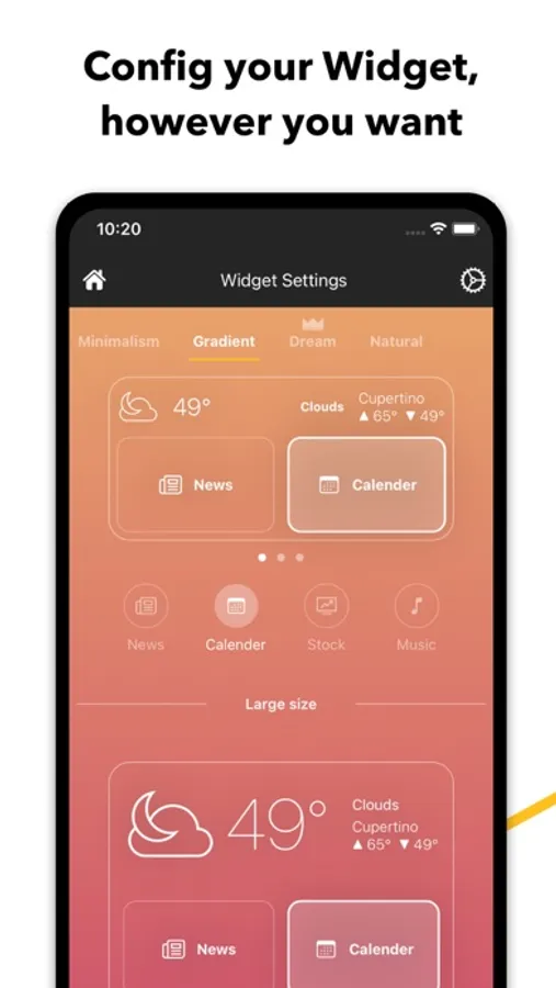 - Stylish: looks beautiful on your home screen, with 4 styles to choose from - Minimalism, Gradient, Dream, and Natural.