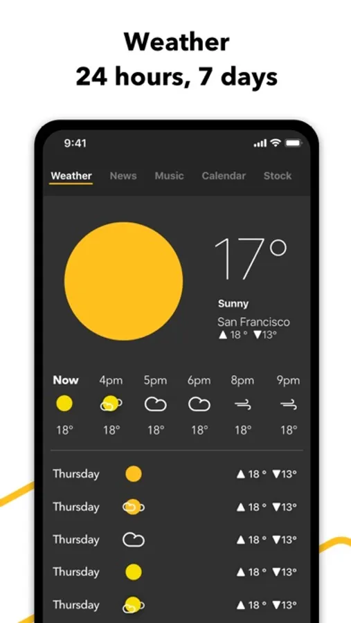 - More inside the app: hourly weather forecast for the next 24 hours, and daily weather forecast for the next 7 days