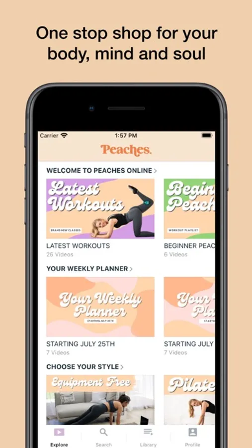 A complete digital health hub, Peaches Online is a one stop shop for your body, mind and soul. All our workouts can be completed at home, in the gym or wherever you are and the majority are under 30 minutes so you can get a sweat on and then get back to your day. Our workouts are based in Pilates methods which means you can safely lengthen and strengthen your entire body in a safe, low impact environment. That doesn't mean they're easy though! With a huge variety of classes including Boxing, Cardio, High Intensity Interval Pilates (HIIT), Booty Camp, Barre Burn, Monster Abs, Power Pilates, Yoga and more you will never run out of options.