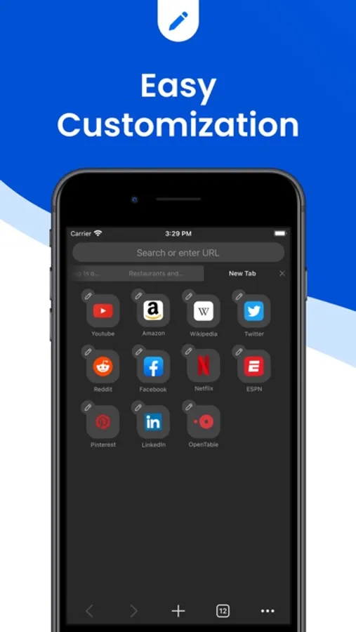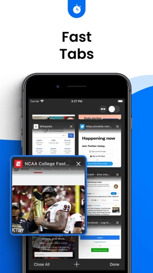 • Fast Tabs - Jump between multiple tabs with speed and ease using the tab bar, just like on your desktop browser.