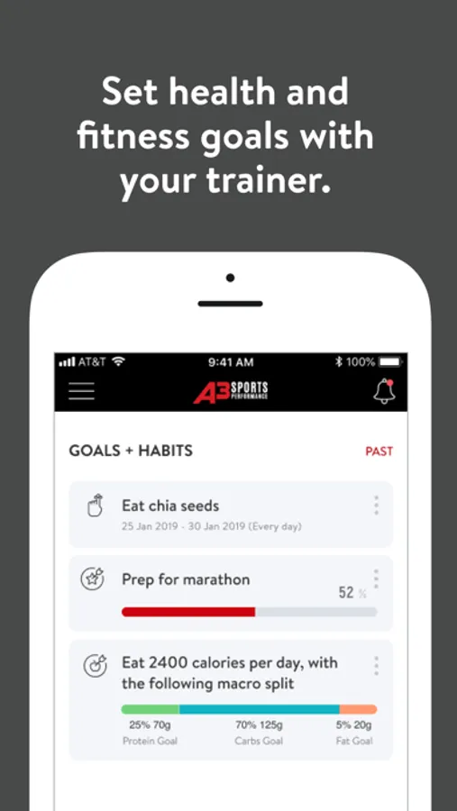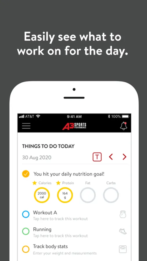 With the A3 Sports Performance App, you can start tracking your workouts and meals, measuring results, and achieving your fitness, performance goals, all with the help of your personal coach!