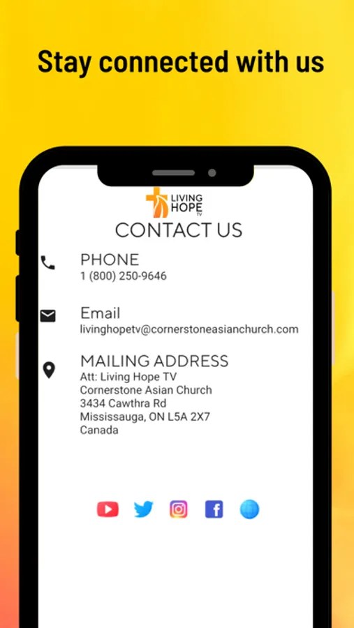 Living Hope Television is a Christian Bible-based Canadian Channel by Cornerstone Asian Church Canada dedicated to broadcasting the word of God in languages; English, Urdu, Hindi, and Punjabi 24 hours a day, seven days a week through various mediums.