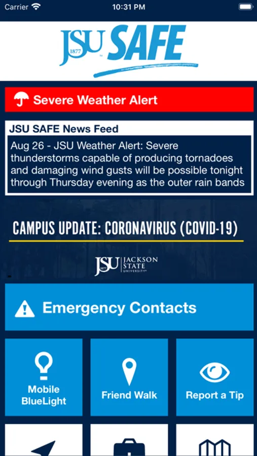 - Panic Button / Mobile Bluelight: Send your location to JSU security in real-time in case of a crisis