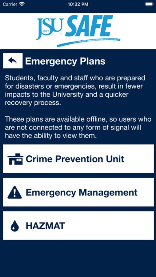 JSU SAFE is the official safety app of Jackson State University. It is the only app that integrates with JSU's safety and security systems. Campus Police has worked to develop a unique app that provides students, faculty and staff with added safety on the JSU campus. The app will send you important safety alerts and provide instant access to campus safety resources.