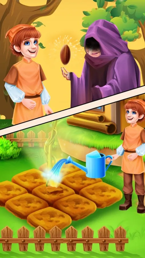 Mike lives in a town with his mom. On his way to the town selling the bread, he gives the bread to the old woman and he gets a magic seed. Mike meets the giant and the fairy in the castle. With their cooperation, they flee from the castle.