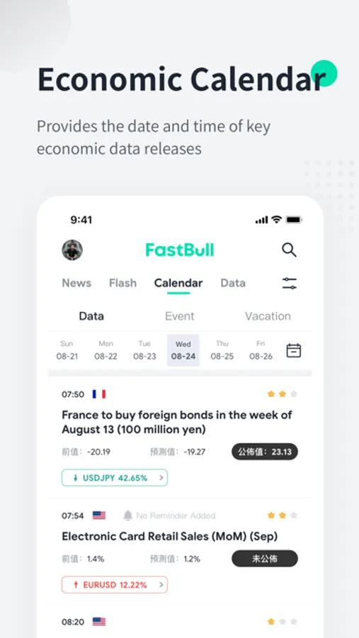 Our real-time tracking of important global financial events and data, and based on historical data statistics, calculate the probability of ups and downs of financial calendar events on the corresponding assets, and easily understand the impact of financial events on the market.