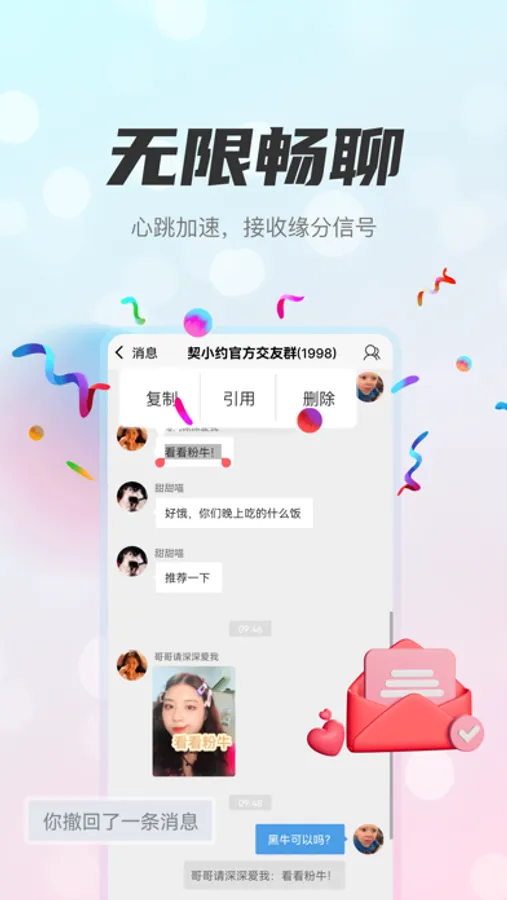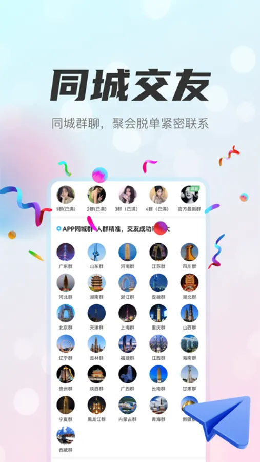 我们拥有全国群、同城群,目前全国群人数上千人,男女比例1:1,群内用户素质高,有礼貌,不论是交友还是交流,都非常愉快!