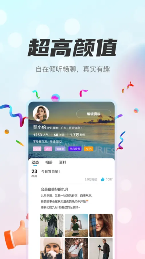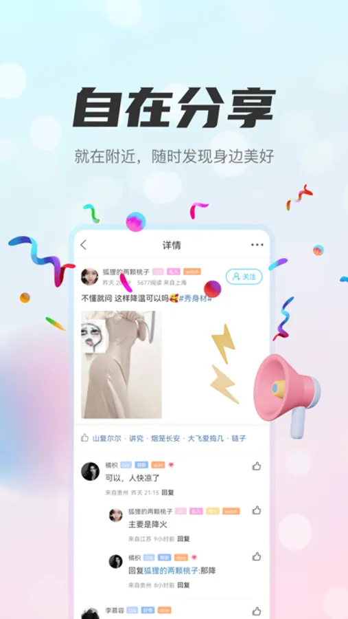 2、朋友圈:大家在这里分享心情、自拍、身材秀、生活点滴,让其他人更懂你!