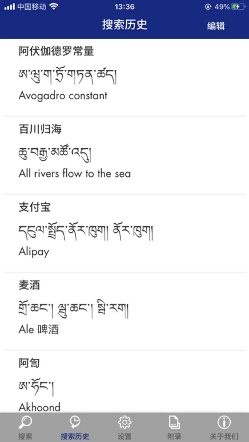 《现代藏语对照词典》app,目前来源于《汉藏英常用新词语词典》编纂小组编纂、四川民族出版社和四川出版集团出版的《汉藏英常用新词语词典》及其增补本。它是由《汉藏英常用新词语词典》编纂小组和成都龙霄信息技术有限公司联合制作的一款词典应用,具有搜索、显示汉藏英三种语言词汇及其藏文释义、历史记录等功能。本应用可以分别用汉、藏、英三种文字显示,以方便不同语言的使用者。