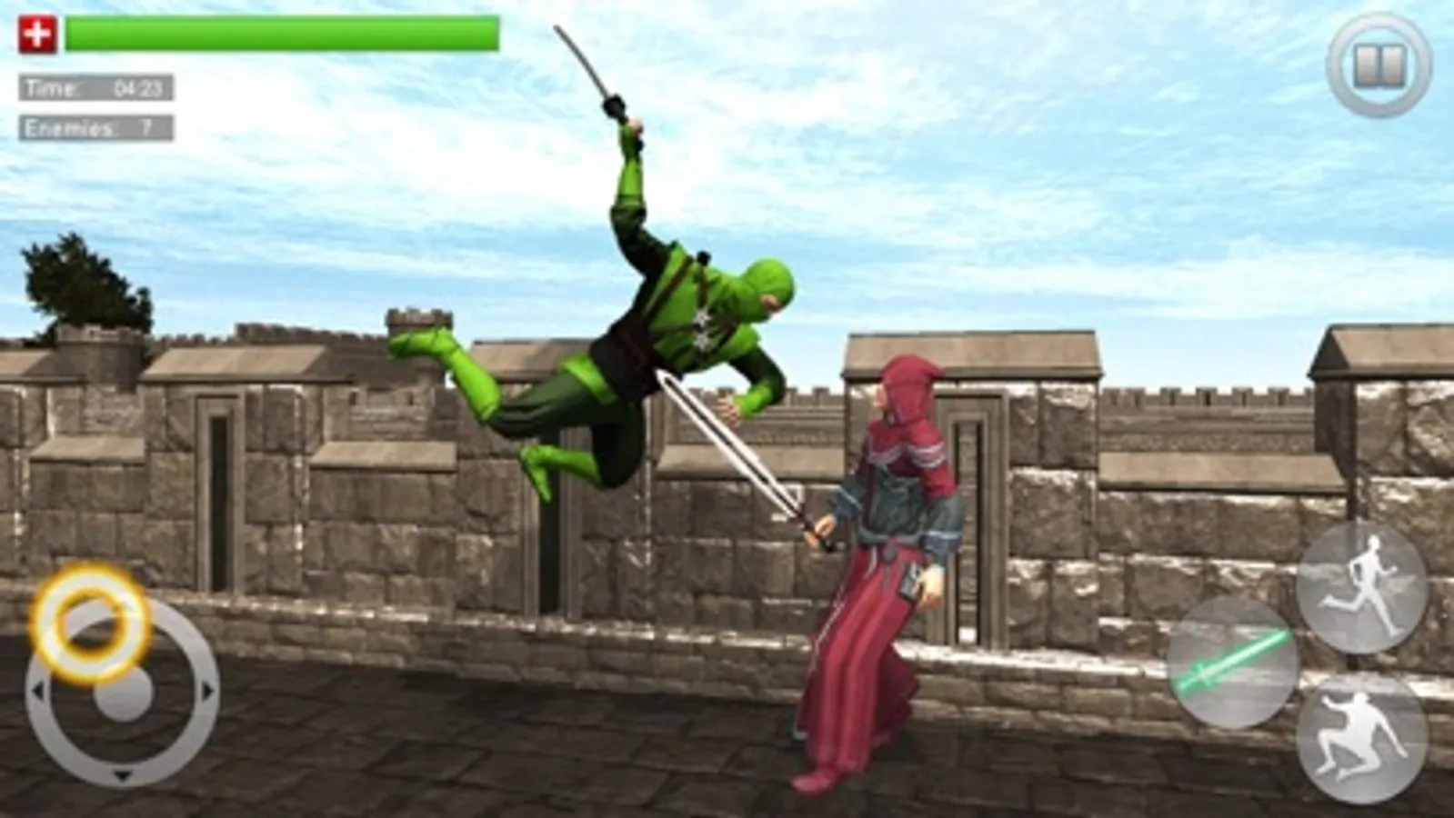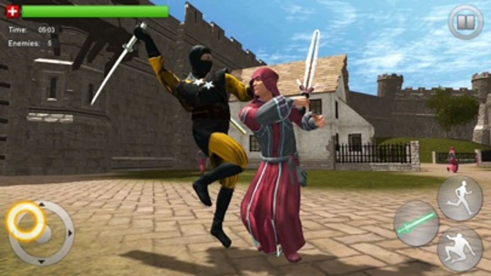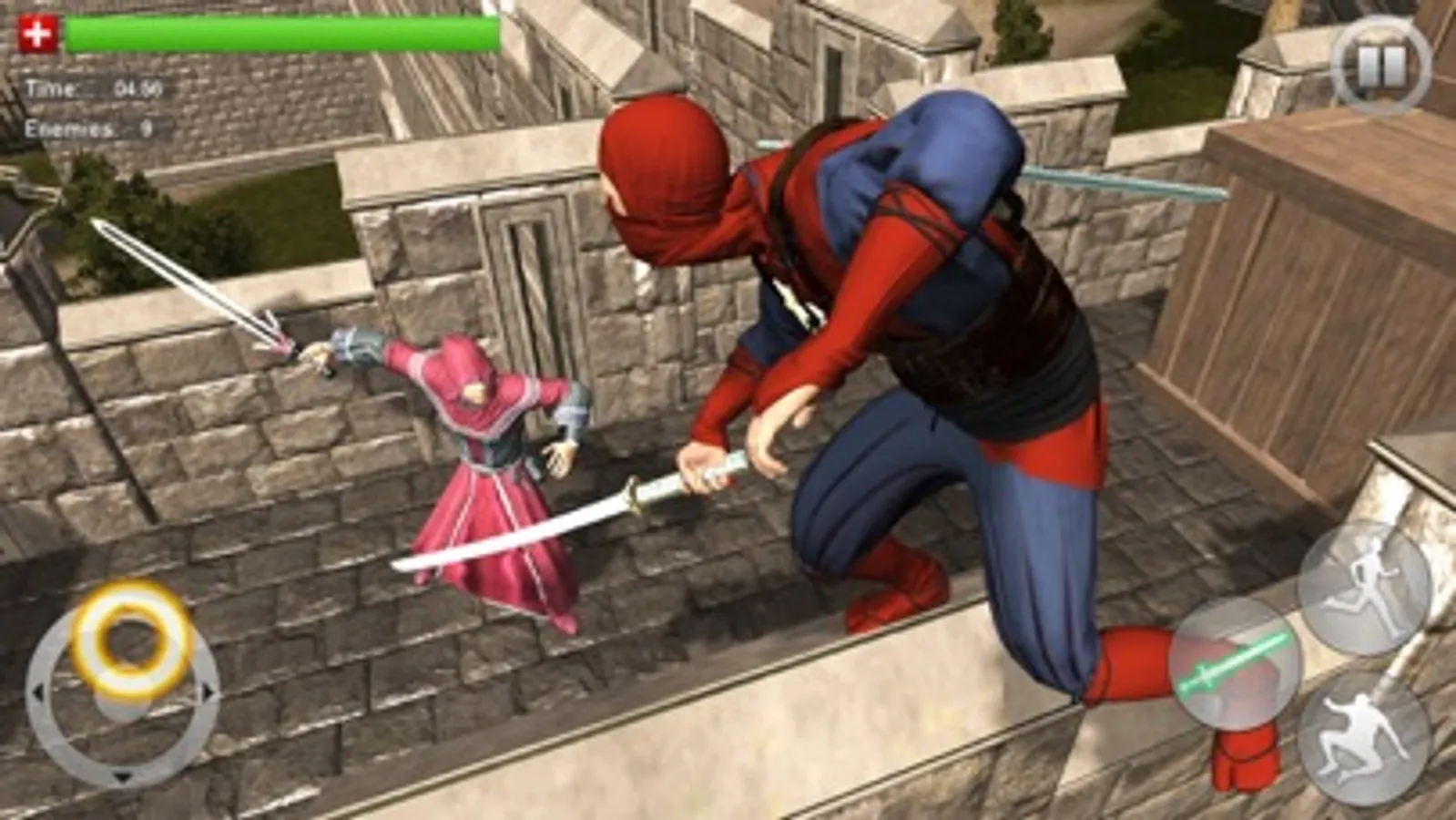 You will get gorgeous graphics, innovative gameplay and intense boss battles, a heroic super ninja warrior adventure set in old medieval castle to fight against odds. Experience sword fighting with realistic and smooth controls, keep attacking your enemy until his health drops to zero. Be careful while fighting enemies can attack you from different angles, you may need to have a close look at all of your sides to keep yourself safe.