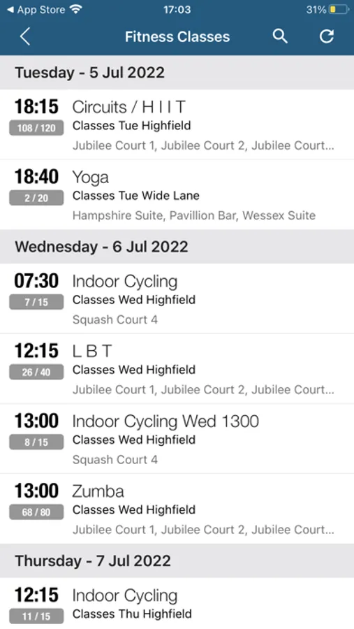FITNESS CLASS TIMETABLES