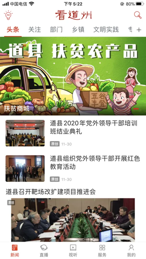 “ 看道州”客户端,是道县的全资讯、综合性的手机融媒体。市民可通过“看道州”看电视、听广播、知天下,也可以通过平台进行便民信息查询,真正实现“一手掌握道州大事小情”。