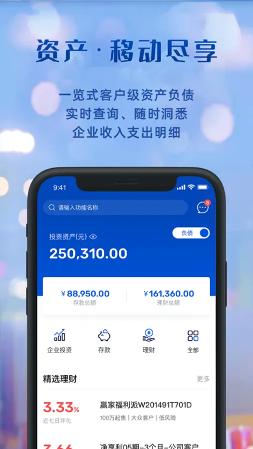 一览式客户级资产负债实时查询,随时洞悉企业收入支出明细。