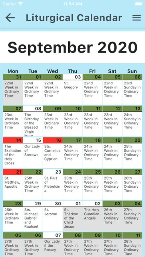Liturgical Calendar
