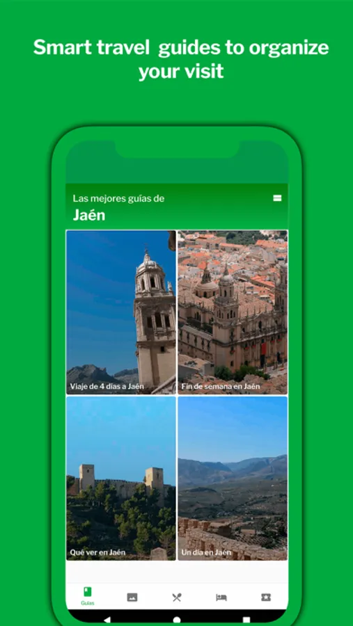 In Jaén by GOAZ you will find four travel guides of the city, as it will help you organize your trip in a way that adapts your desires. You will find a “What to see” guide with the essential places that you must visit in that city, without time or routes, so you can organize yourself as you want. But if you are looking for a more planned itinerary, you can also consult the guides for "One day", "Weekend" or "4-day trip". With these guides you will not have to worry about organizing your trip, as you have already done it from morning to night.