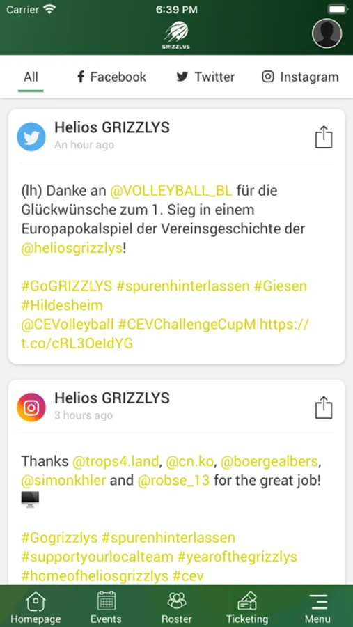 - Earn points by showing up at the stadium during the match days and by participating at quizzes, poll or predictions