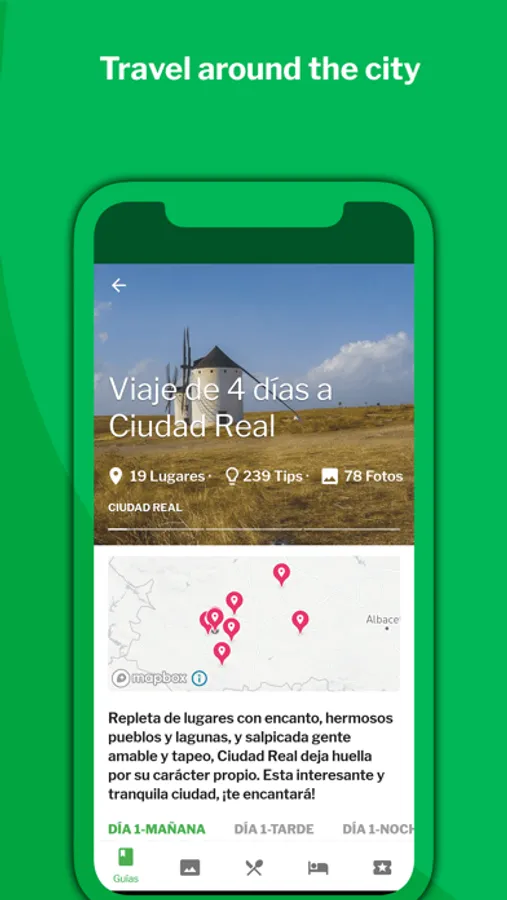 In Ciudad Real by GOAZ you will find four travel guides of the city, as it will help you organize your trip in a way that adapts your desires. You will find a “What to see” guide with the essential places that you must visit in that city, without time or routes, so you can organize yourself as you want. But if you are looking for a more planned itinerary, you can also consult the guides for "One day", "Weekend" or "4-day trip". With these guides you will not have to worry about organizing your trip, as you have already done it from morning to night.