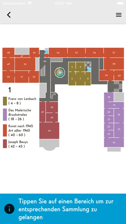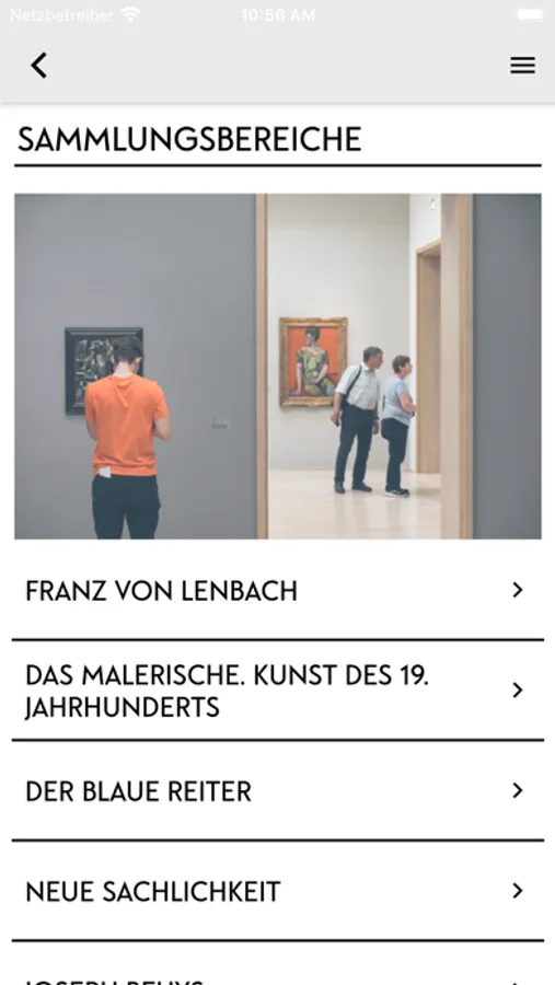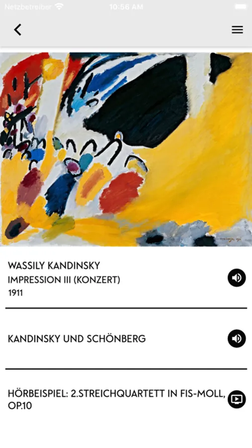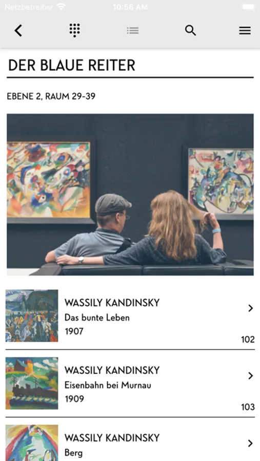 Let our audio guide take you on a voyage of discovery through the Lenbachhaus’s galleries—from the nineteenth century to the world’s largest collection of Blue Rider art and on to contemporary works. The audio guide features a wealth of information, including on the genesis of the works and the historical context. It is available in German and English. The app also provides you with all information you need to plan your visit, from opening hours and ticket prices to details on how to get to the Lenbachhaus.
