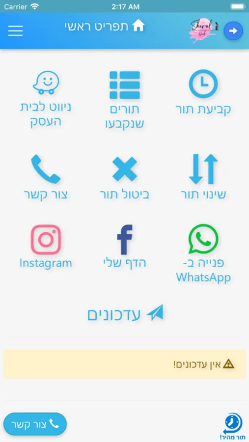 באפליקציה אפשר לקבוע תור, לנווט באמצעות Waze ולפנות אליי באמצעות WhatsApp.