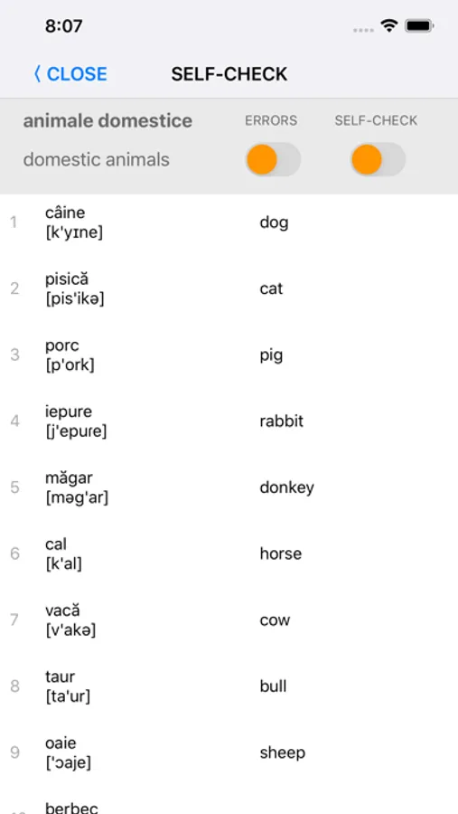 - Testing of the knowledge of the words happens through fun and simple tests:
