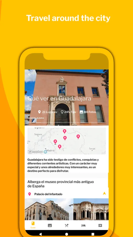 In Guadalajara by GOAZ you will find four travel guides of the city, as it will help you organize your trip in a way that adapts your desires. You will find a “What to see” guide with the essential places that you must visit in that city, without time or routes, so you can organize yourself as you want. But if you are looking for a more planned itinerary, you can also consult the guides for "One day", "Weekend" or "4-day trip". With these guides you will not have to worry about organizing your trip, as you have already done it from morning to night.
