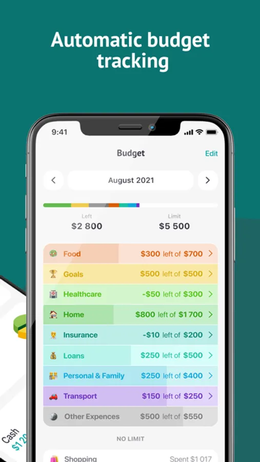 All your transactions will be automatically categorized. You can split transactions, rename or change the category, write a note or add a photo. Also you can create your own transactions for cash spendings.