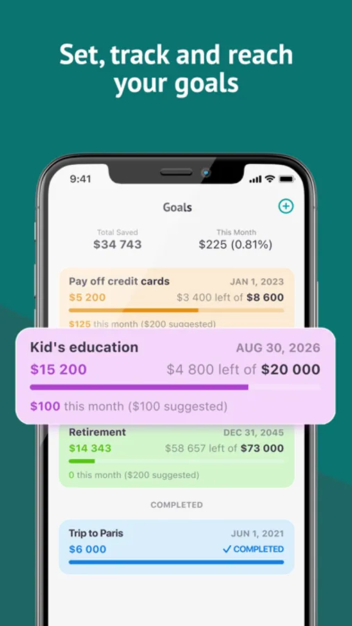Enter a name, goal amount, end date, link a bank or investment account to the goal and don’t forget to add a photo, it’s always better to visualize your dream.That’s all! Finmatex will track your progress and remind you about your dreams.