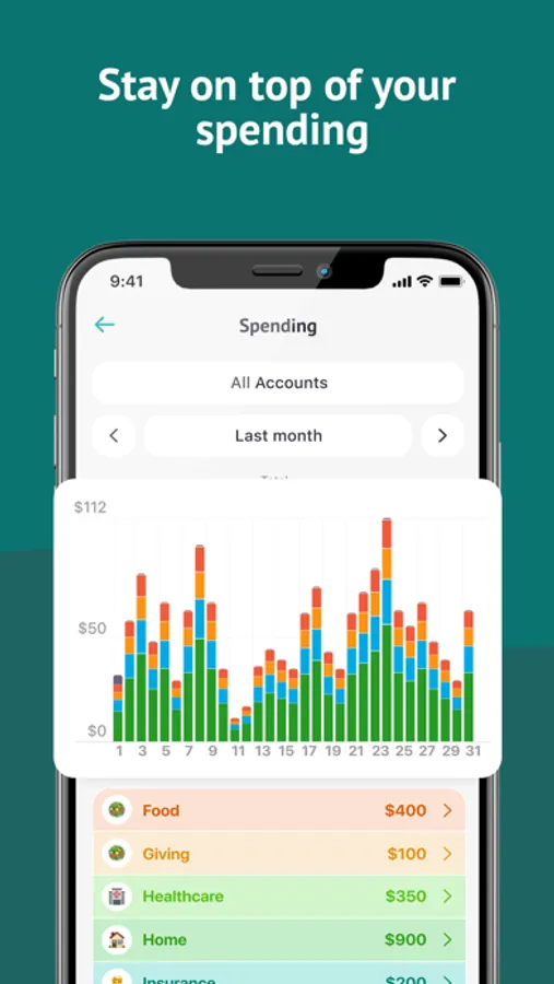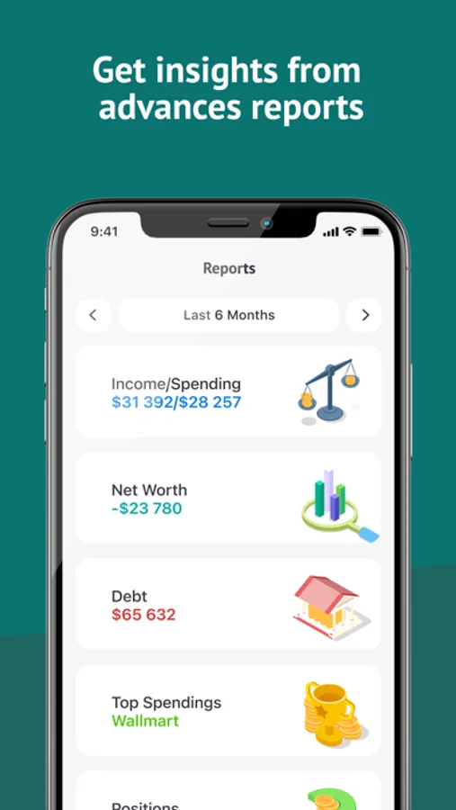 Stay on top of your spending. Net worth, spending and income reports, top of your favourite payees, interest paid and other debts reports.