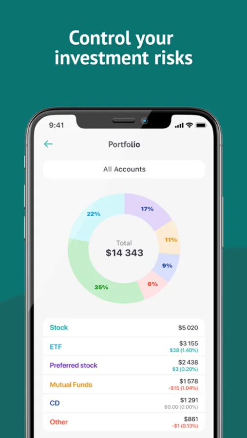 Look through your portfolio and positions, control daily changes, connect your investment accounts to your goals.