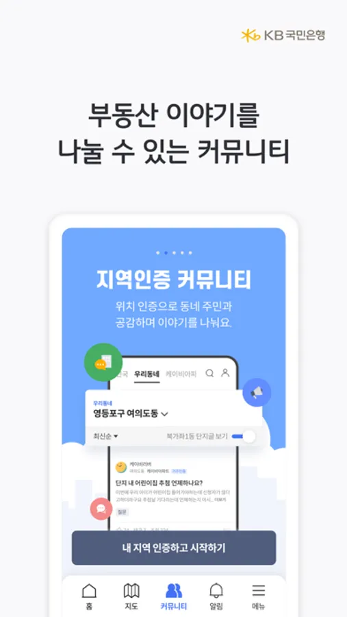 • 저장공간 : 기기사진, 미디어, 파일에 대한 접근권한으로, [단지톡 등록], [매물 사진등록], [프로필 사진등록], [KB시세 다운로드], [KB통계 다운로드] 시 사용합니다.