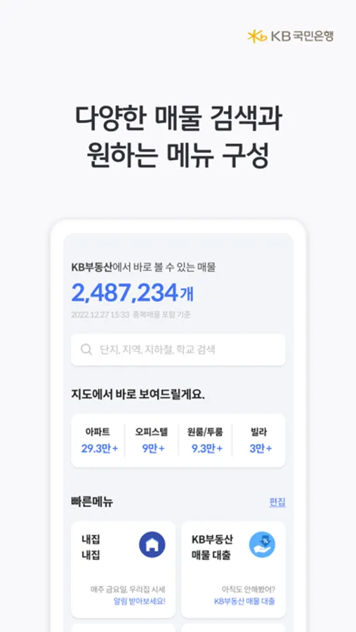 KB시세부터 매물까지 집에 필요한 모든 정보는 KB부동산에서 확인하세요!