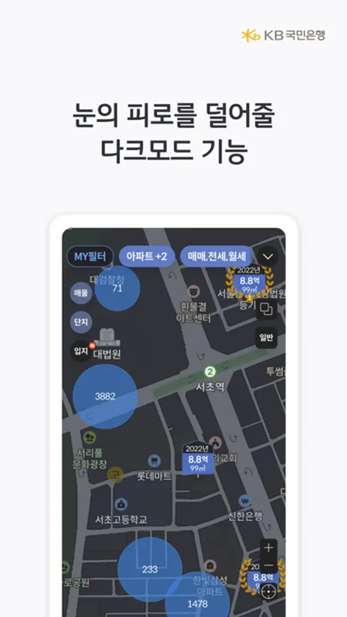 ◦ 여러분의 눈 건강을 위해 준비했습니다! 복잡한 부동산 정보, 이젠 다크모드로 편하게 보세요!