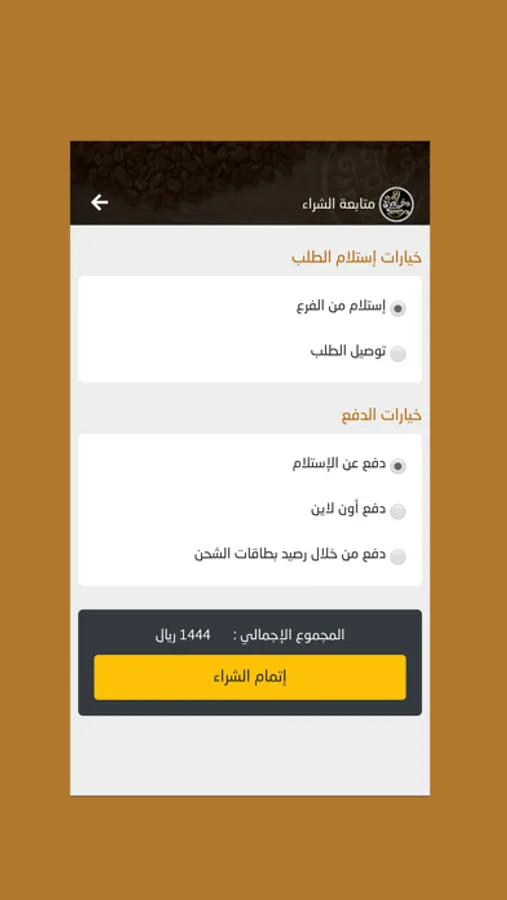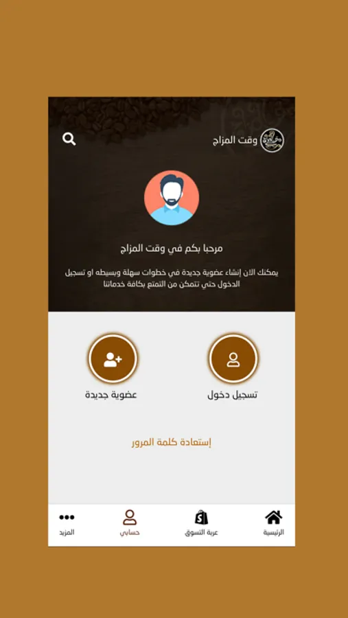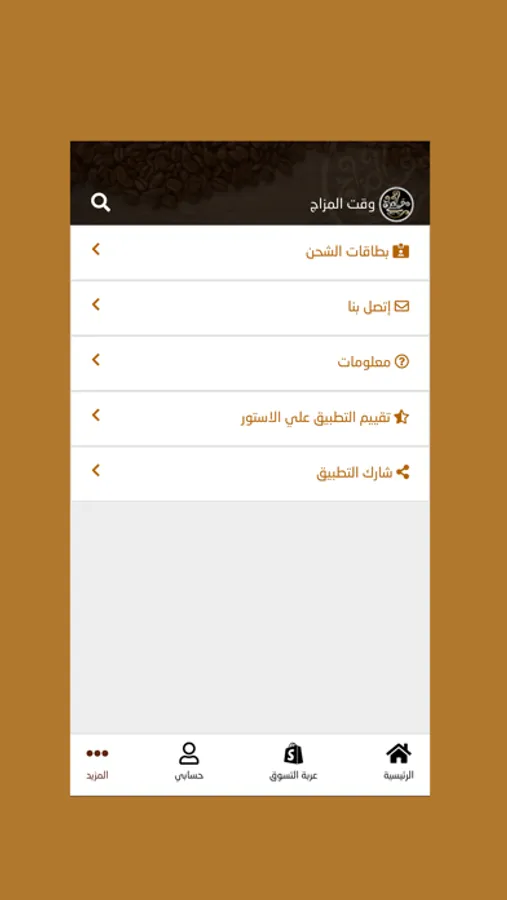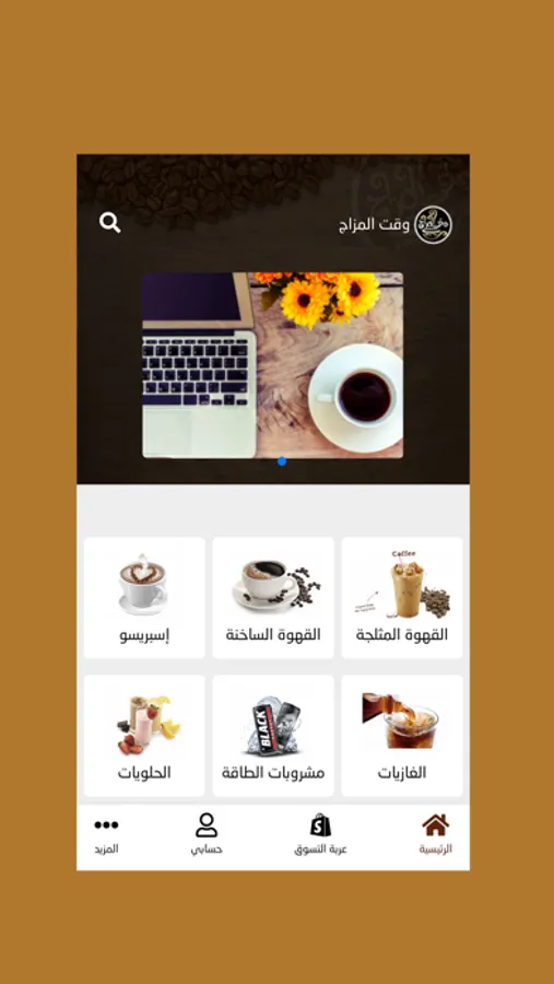 هو تطبيق تسويقي متخصص في بيع كافة انواع القهوة و المشروبات
