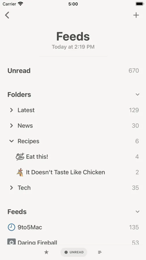 Sync all your feeds and articles with iCloud. Reeder 5 comes with a built-in RSS/Feeds service which will keep everything in sync on all your devices. Of course, this is optional. You can still just use one of the many third-party services supported by Reeder or just RSS (without sync).
