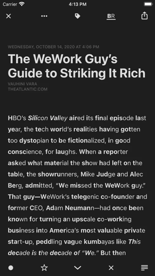 Enter Reader View (for feed items and read later links that support this) for a clutter-free reading experience directly in Reeder's article viewer. You can enable "Automatic Reader View" on a per-feed basis to always load items of a feed with Reader View.