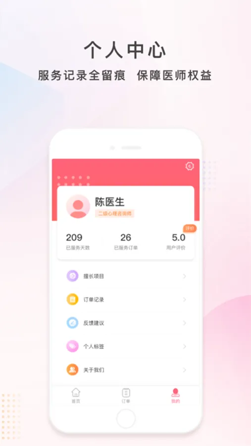 护康相伴医师端,医护工作者完成“心理咨询”、“中医理疗”等相关业务内容的首选工作应用,旨在为医护工作者带来更便捷、高效、灵活的工作体验。