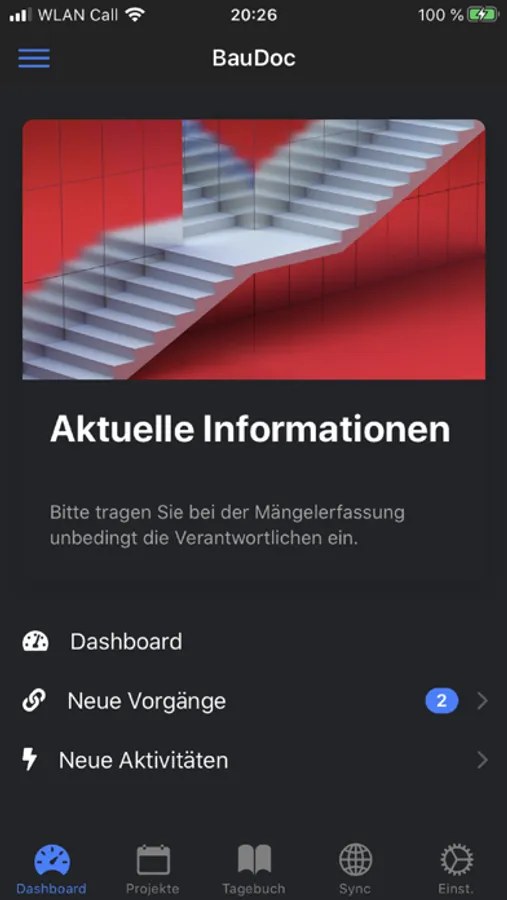 Cloud-Server und mobile Apps: BauDoc besteht aus der Cloud-Server-App, in Deutschland oder bei Ihnen gehostet, und verwaltet alle Projekte, Benutzer, Aktivitäten, Vorlagen, Reports und Berichte. Die mobile BauDoc-App läuft offline auf Telefonen/Tablets und liefert alle Infos auch hinter Stahlbeton.