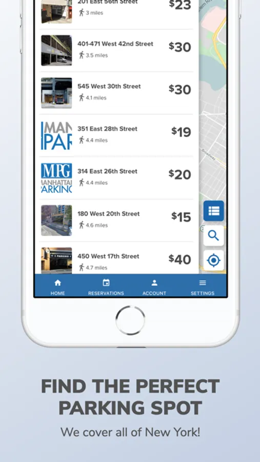 1. Search for parking near your destination. You can search by address, landmark, neighborhood and more.