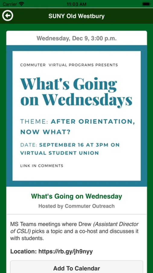 Use the SUNY Old Westbury Events app to find out what events are happening and find out how you can get involved on campus!