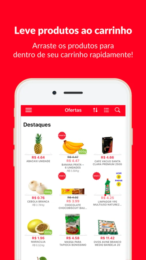 • Adicionar produtos no seu carrinho com um simples tocar e arrastar.