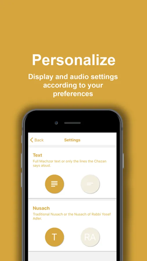 • Two different Nusach’s to choose from: The traditional Nusach and cantorial Nusach.